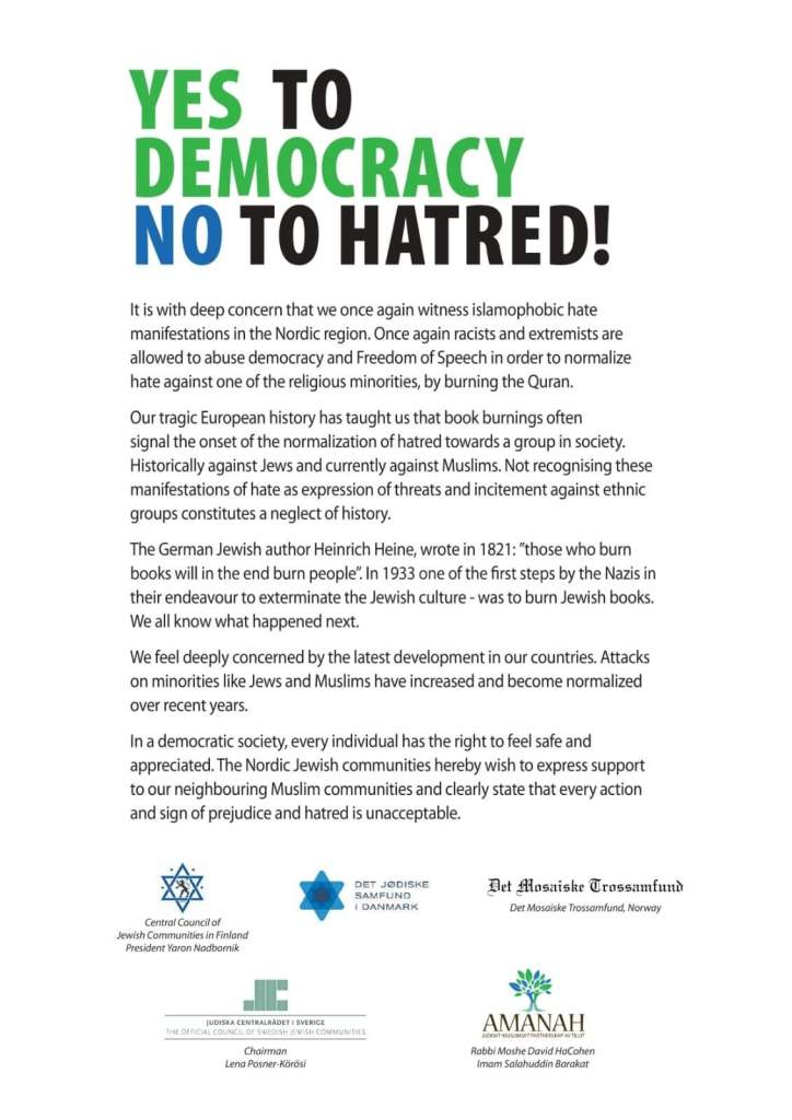 The Nordic Jewish Communities published a statement just a few days ago concerning the matter, and I decided to paste it here for you all to read: